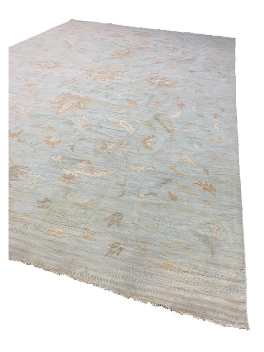Artisan Bloom Blue Beige Transitional Knotted Rug
