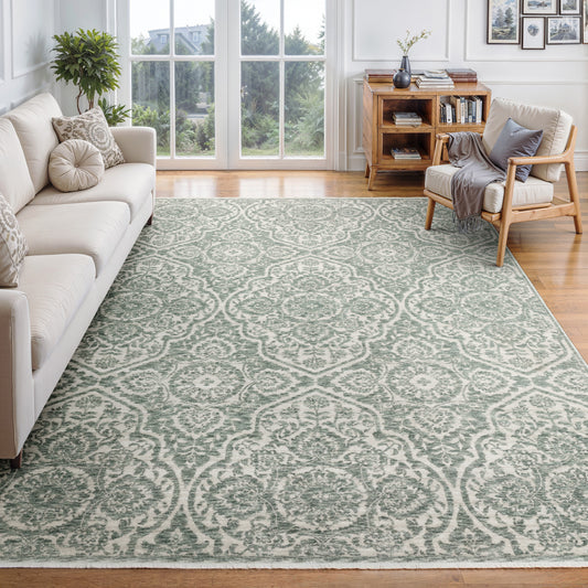 For those who appreciate a mix of old-world charm and contemporary styles, transitional green rugs are a perfect choice. Pairing modern color palettes with hints of classic designs, they create an inviting and cohesive look in any room.