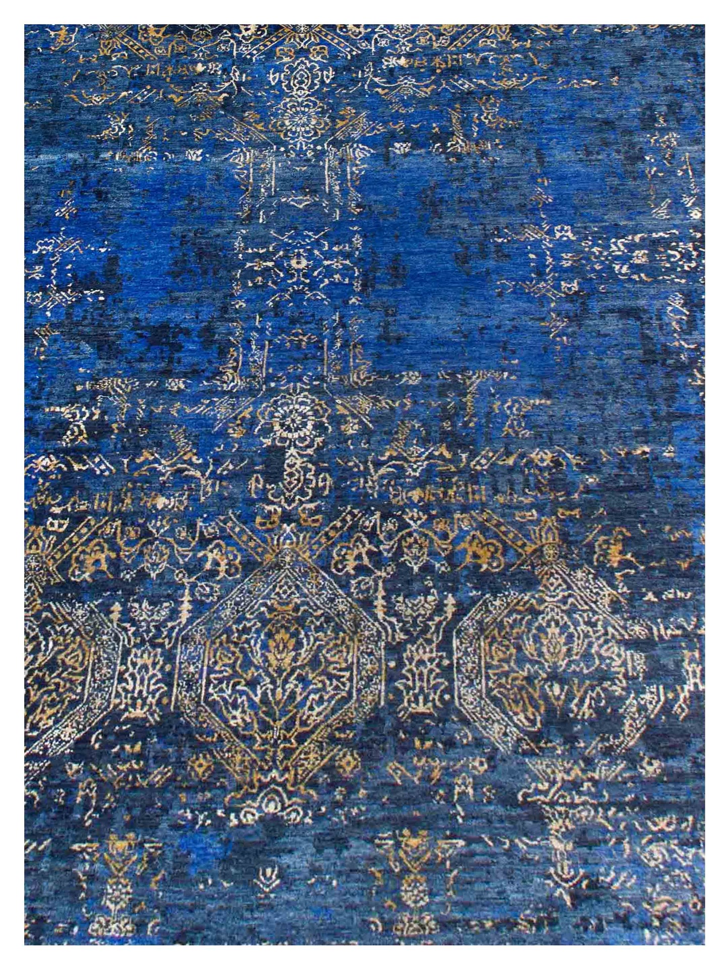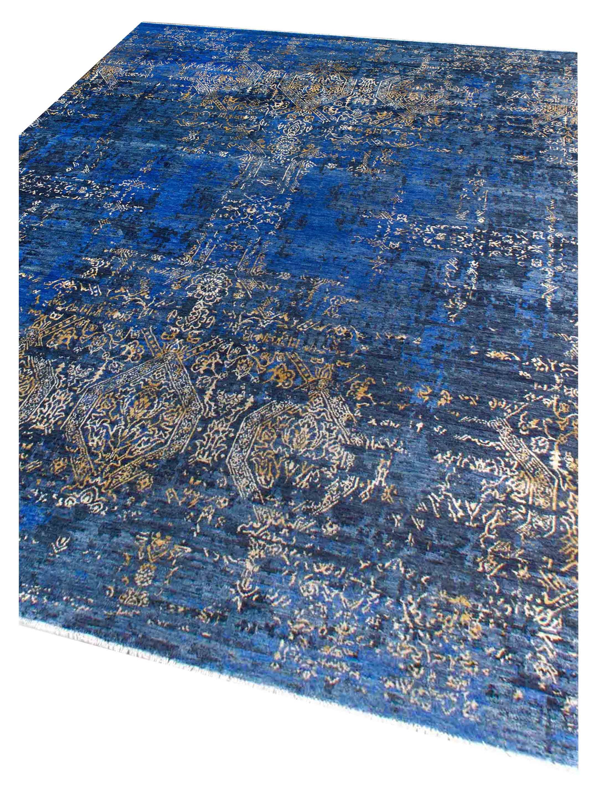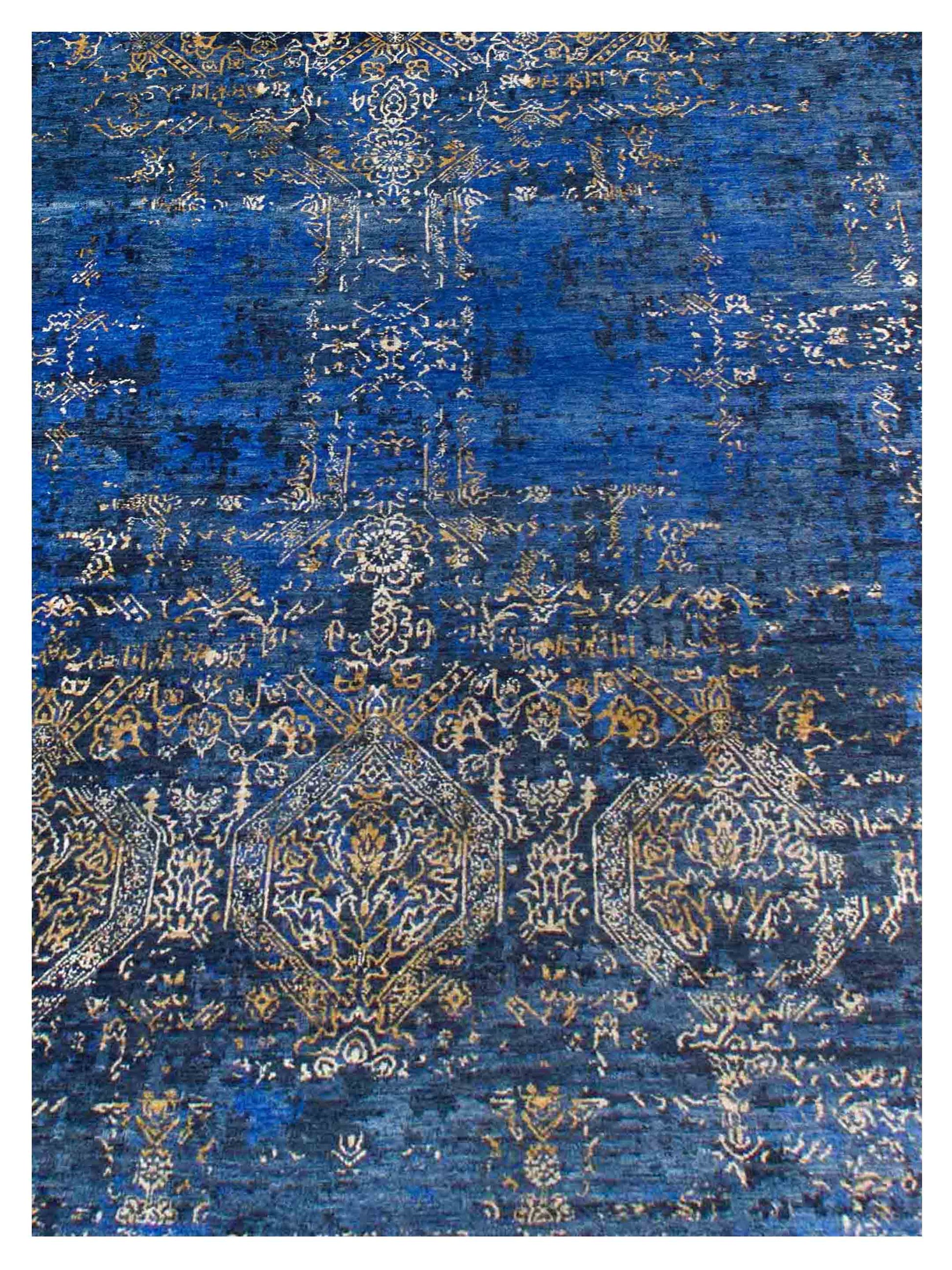 Artisan Dakota Navy Blue Gold Transitional Knotted Rug