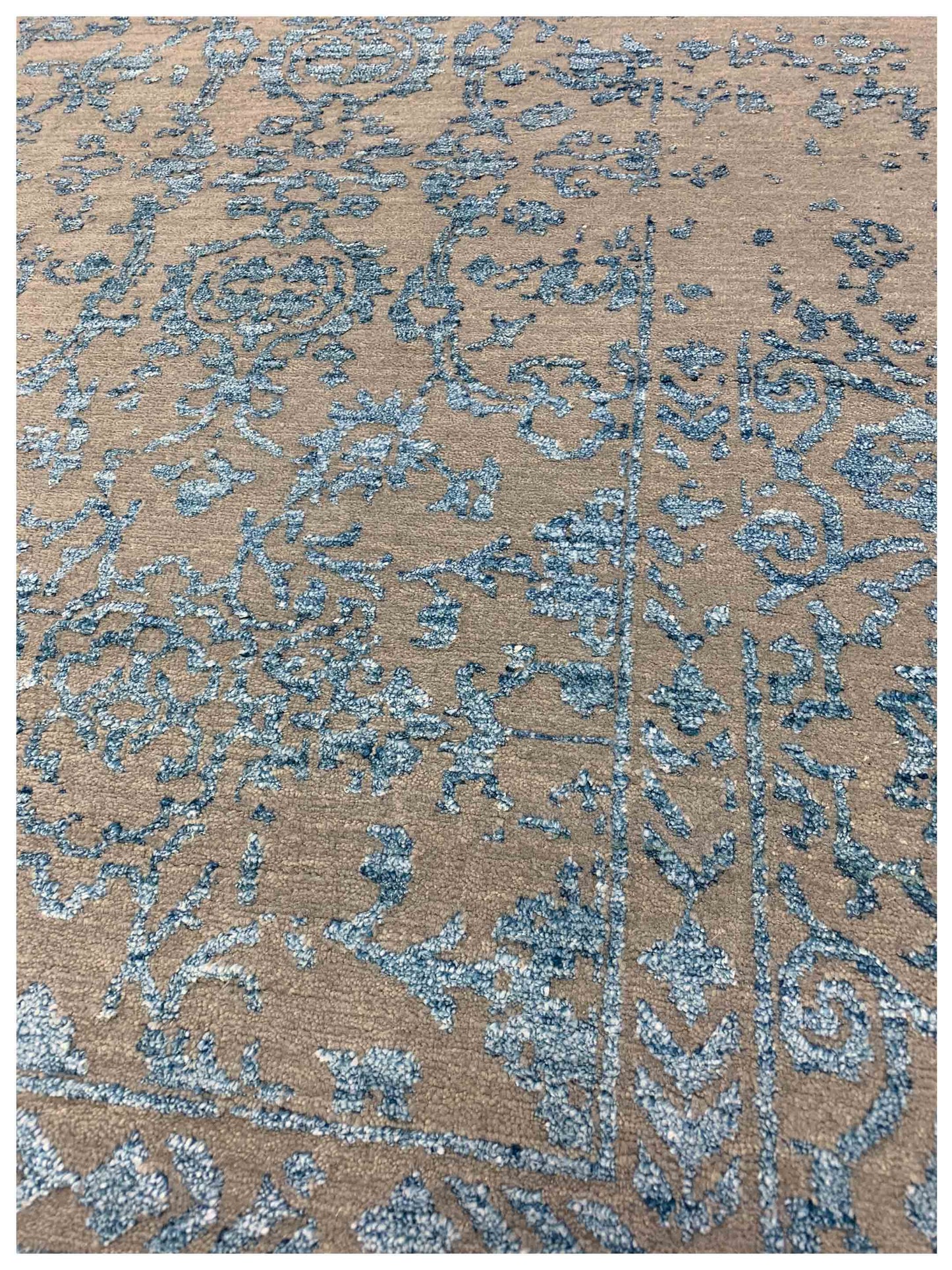 Featuring a harmonious blend of traditional patterns and contemporary distress designs, these rugs offer subtle hues and a lustrous sheen, making them a perfect fit for a variety of interiors. Whether you're aiming for a classic or modern look, the blue beige rug from this collection seamlessly integrates into any decor style.