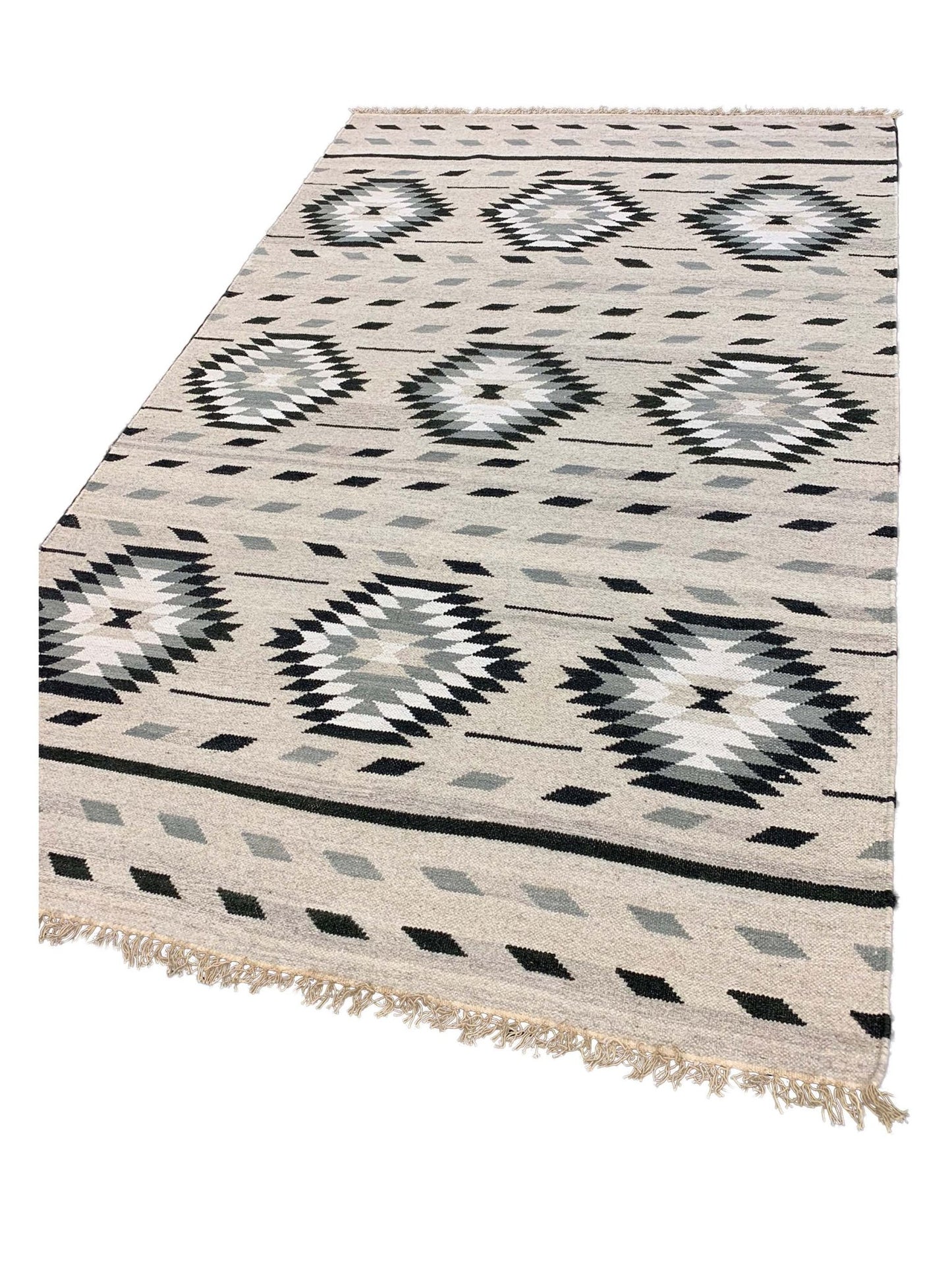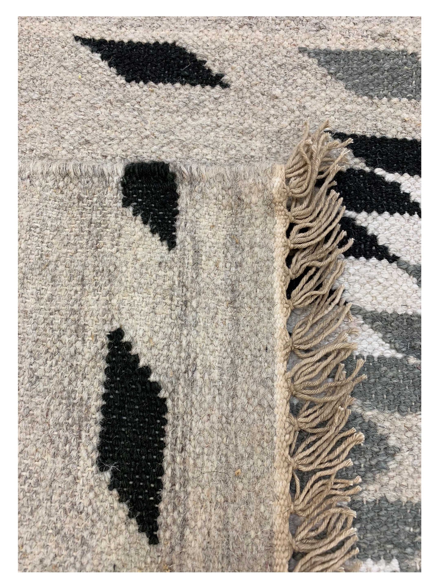 Experience the beauty and craftsmanship of a Handmade Kilim rug grey from the Kim Collection. Elevate your space with a touch of tradition and style, all while supporting artisans in India. Shop now and transform your home with a rug that is as unique as you are.