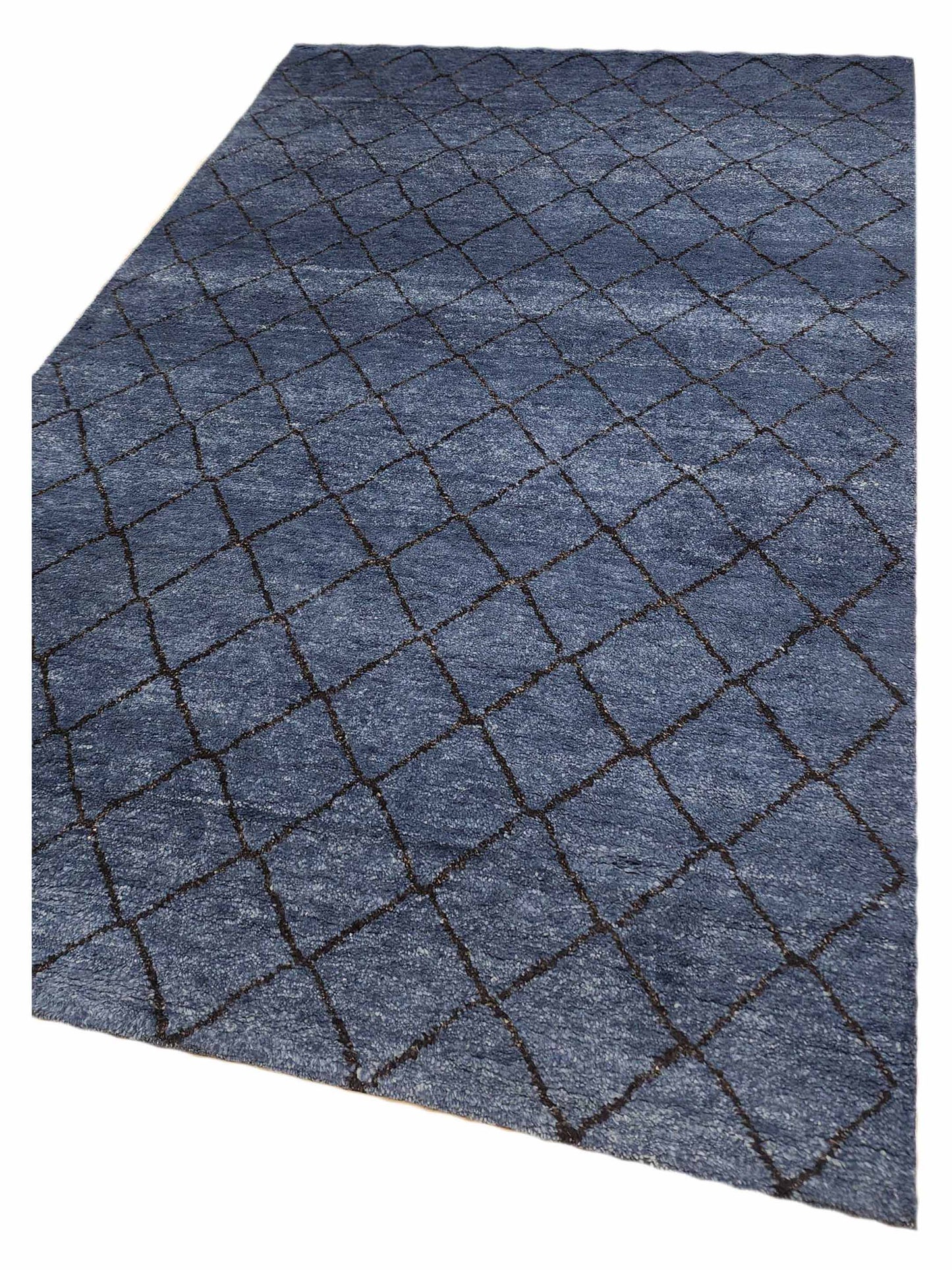 Handmade from the finest mohair wool, our navy rugs boast natural, earthy hues. This wool blend not only provides a unique texture but also ensures durability and comfort underfoot. Unlike the original Moroccan Azilal rugs, which were never washed, our innovative soft washing technique maintains the rug's texture while adding an extra layer of beauty and softness.
