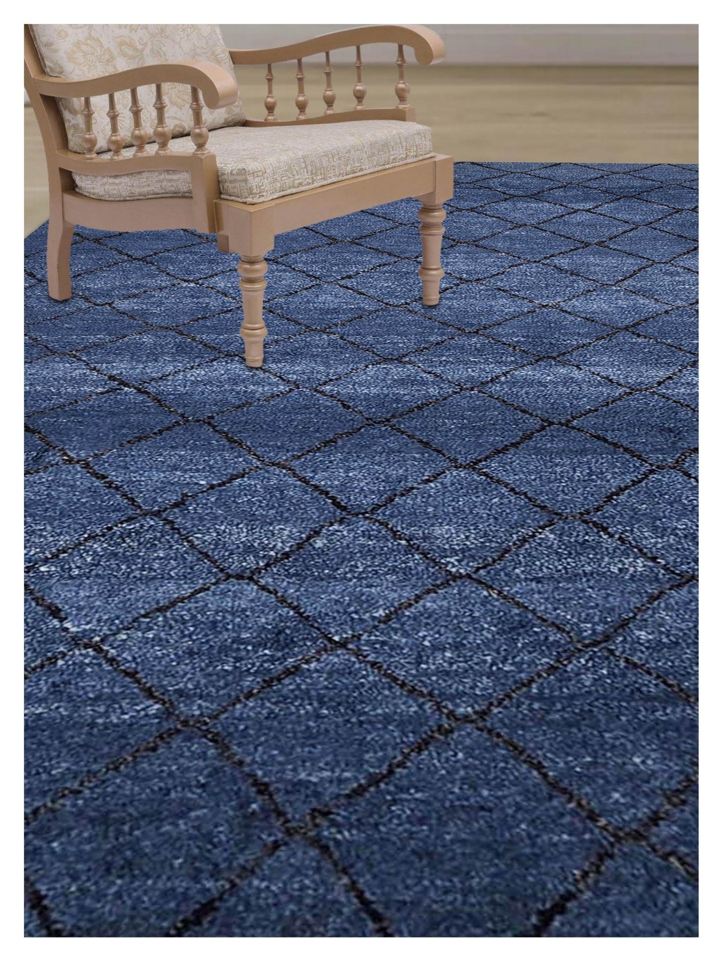 The result is a stunning piece that complements both relaxed and informal home settings, bringing a touch of authenticity and elegance to any space. Experience the perfect balance between tradition and modernity with our meticulously crafted navy rugs.