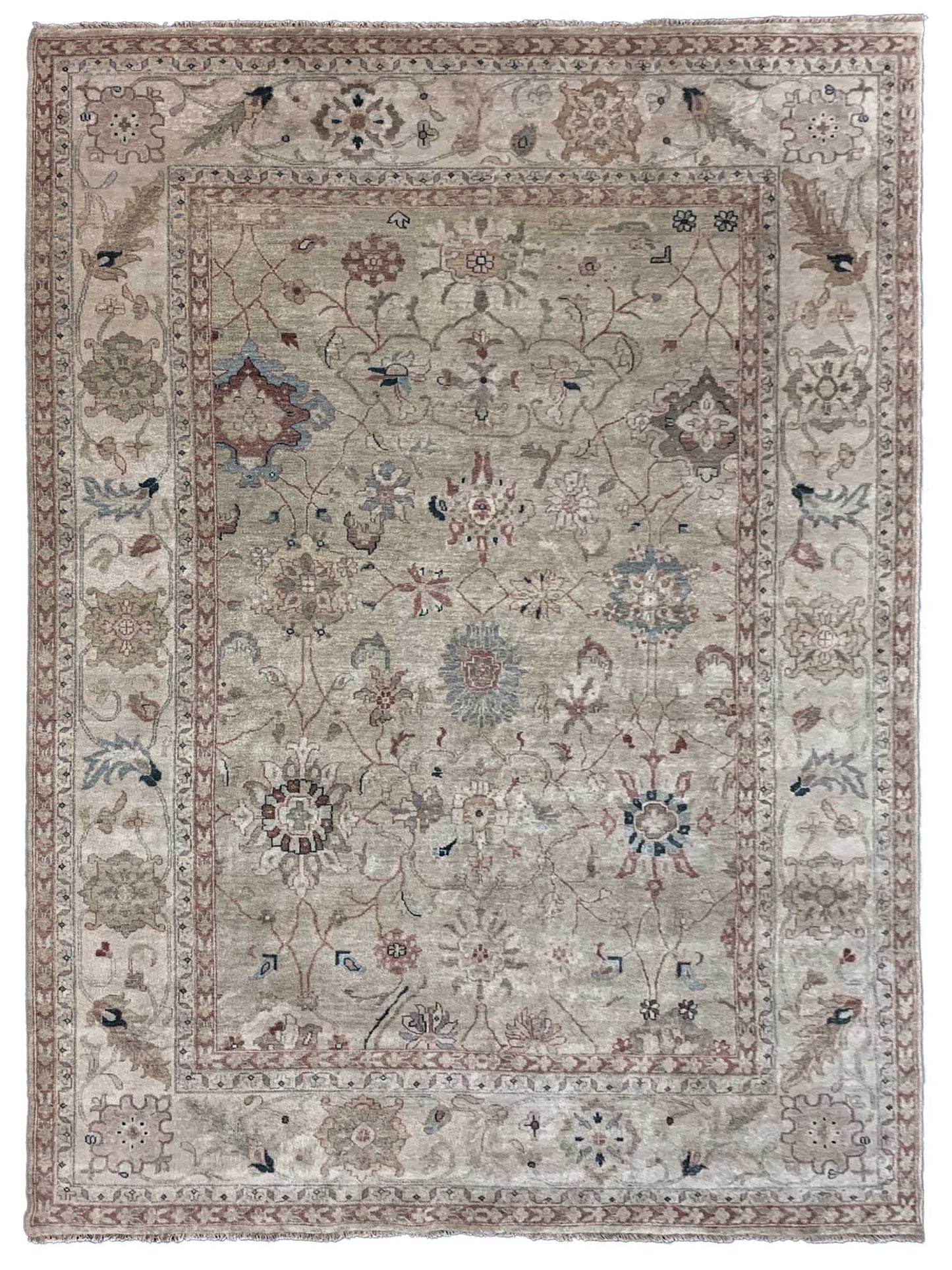 Artisan Priscilla Lt.Green Ivory Traditional Knotted Rug