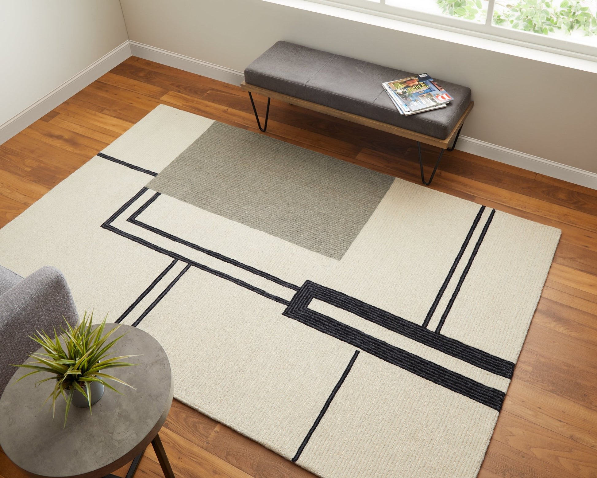 Feizy Maguire 8899F Ivory Gray Transitional/Industrial/Mid-Ce Hand Tufted Rug