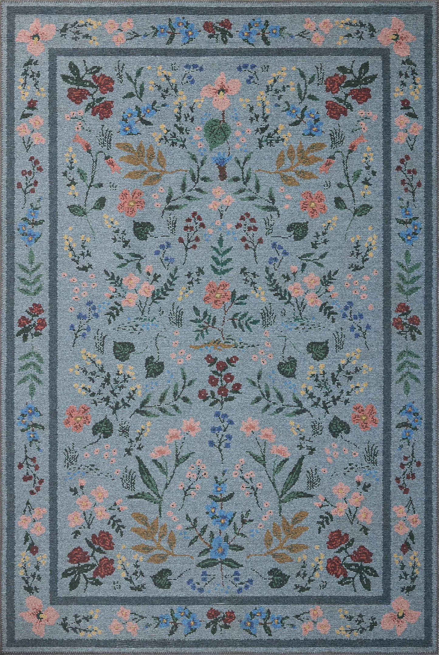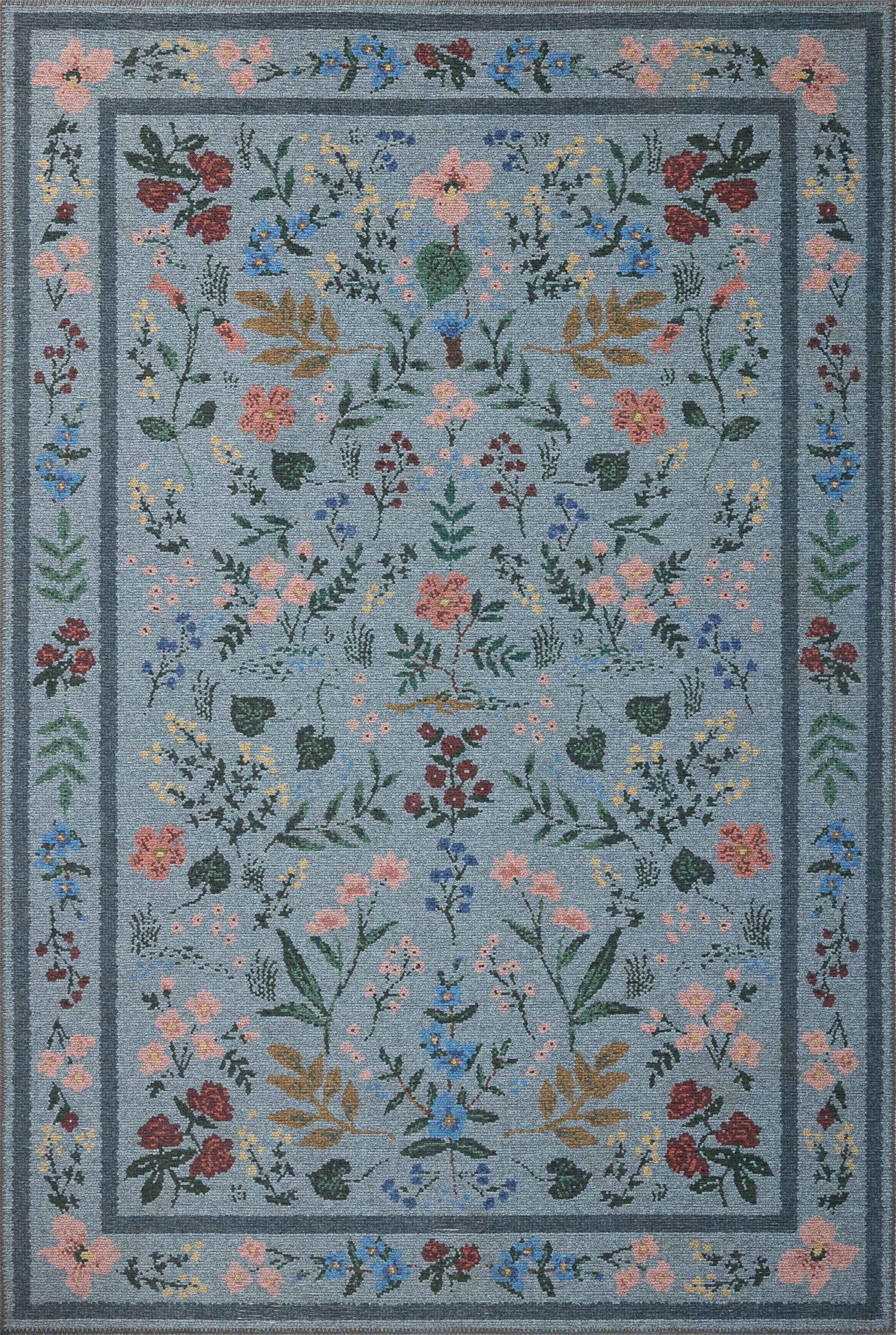 Rifle Paper Co. x Loloi Wildwood WWLD-01 Blue Traditional Power Loomed Rug